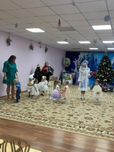 Сегодня в нашем детском саду прошёл новогодний утренник в ясельной группе. Малыши пришли нарядные, превратившись в весёлых зайчиков, красивых снежинок. Все закружились в новогоднем хороводе. Ребята веселились у нарядной ёлочки с добрым Дедушкой Морозом, красавицей Снегурочкой. Они водили хороводы, играли в снежки, танцевали с погремушками. Помогли Снегурочке зажечь огоньки на новогодней, праздничной елочке. Она засияла разноцветными огнями. Дедушка Мороз в конце праздника всем подарил подарки. Утренник прошёл в теплой сказочной атмосфере.