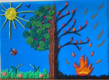Желтикова Аделина, 3 года; «Пожар в лесу»; руководитель – Михалева Юлия Владимировна.