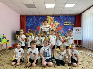В средней и старшей группах прошли спортивные праздники, посвящённые Дню победы. Дети читали стихи, танцевали, соревновались в весёлых эстафетах, почтили память всех тех, кто не дожил до нашего времени, сражаясь с немецкими захватчиками минутой молчания.