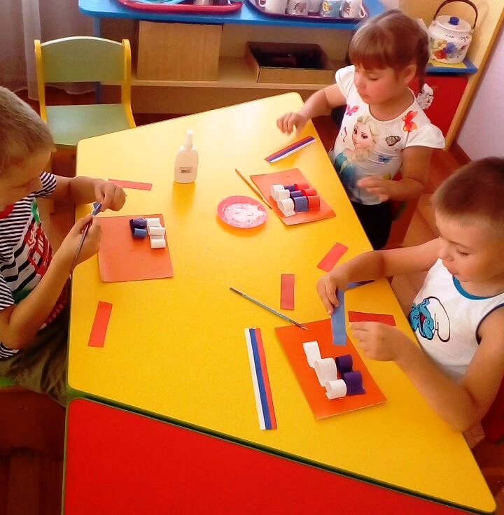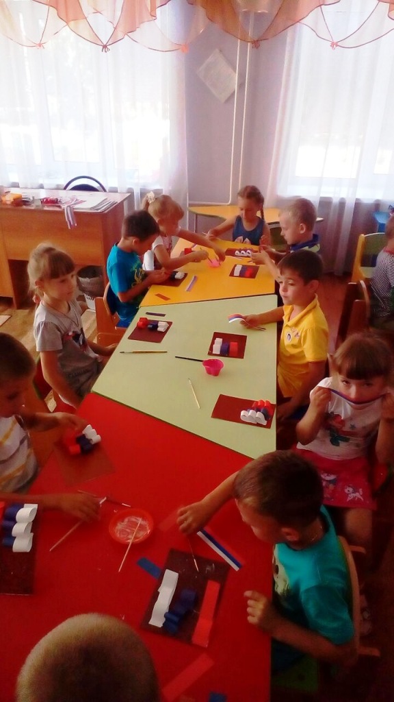 Ежегодно 22 августа в России отмечается День Государственного флага Российской Федерации. В нашем детском саду прошли мероприятия, посвященные празднованию Дня Российского флага. Воспитатели познакомили воспитанников с государственными символами России, беседовали о стране, читали стихи, пословицы и поговорки о нашей Родине. Дети играли в дидактические игры «Узнай наш флаг», «Собери флаг». Во время прогулки дети с удовольствием играли в подвижные игры и рисовали цветными мелками на асфальте флаг нашей Родины. Дети старшей группы изготовили объемную аппликацию «Флаг России». Маленькие патриоты своей великой Родины наверняка запомнят этот день надолго!
