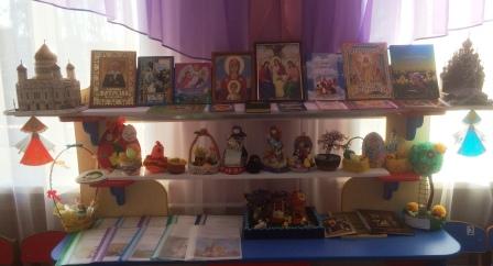 Вниманию присутствующих была представлена выставка детской художественной литературы духовной тематики, творческие работы детей и их родителей, педагогов ДОУ, а также методический материал воспитателей учреждения по тематике духовно-нравственного воспитания детей дошкольного возраста: педагогические проекты, разработки показательных мероприятий, методические рекомендации для родителей и воспитателей.