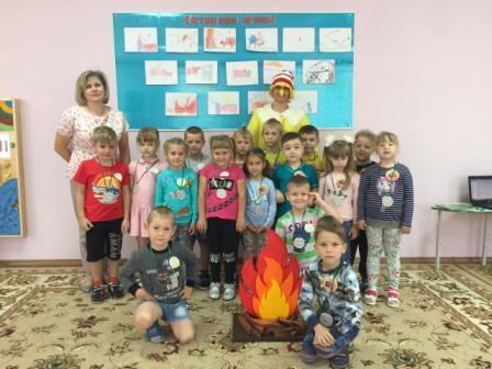 Воспитатели провели беседы «Спичка-невеличка», «Огонь-огонёк». Организовали просмотр обучающего видео «Пожарная машина». Рассмотрели с детьми огнетушитель. Участвовали в конкурсе рисунков «Останови огонь». Проделанная работа помогла сформировать у детей элементарные знания о пожарной безопасности, о причинах пожара, умение регулировать свое поведение в различных ситуациях.