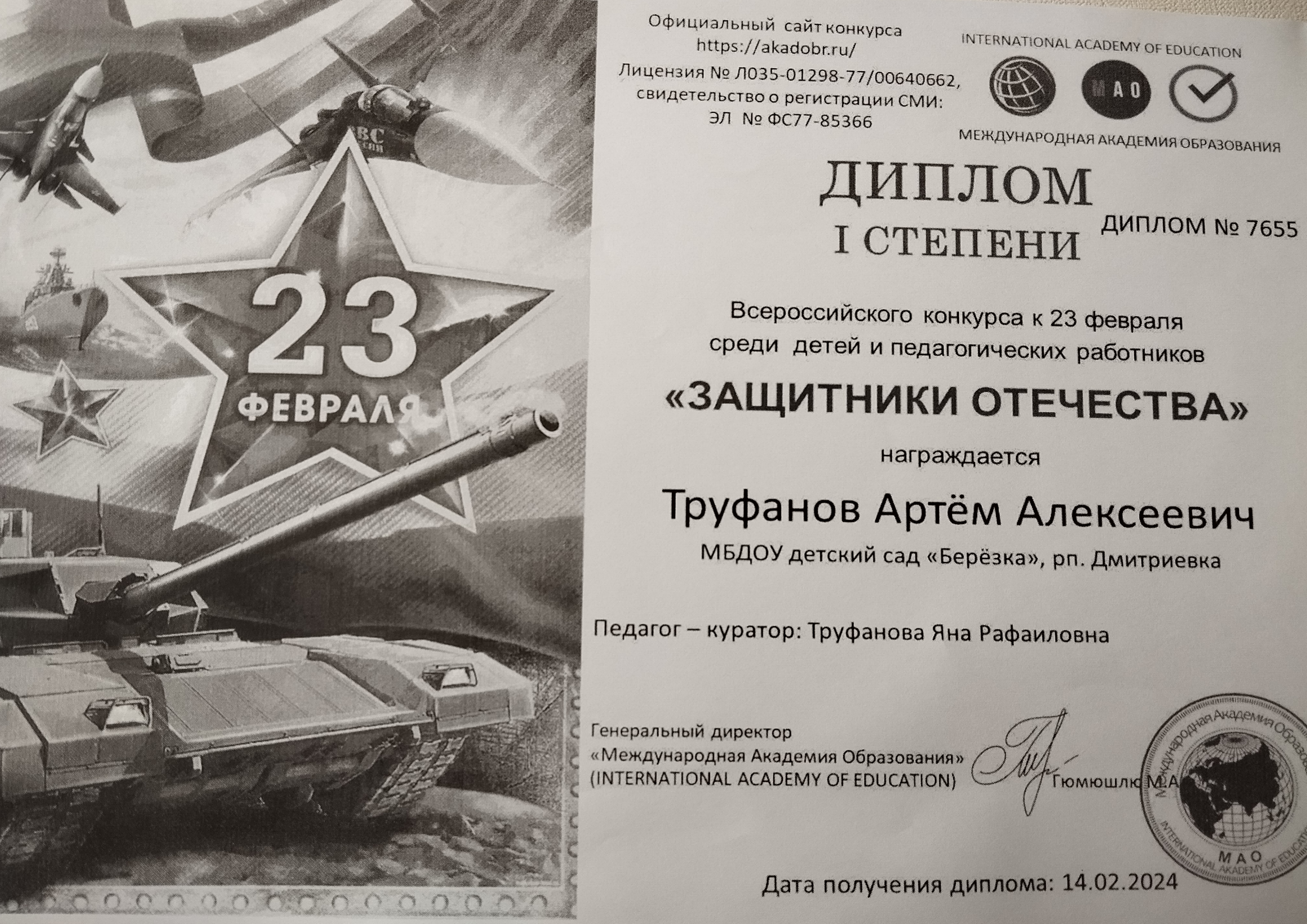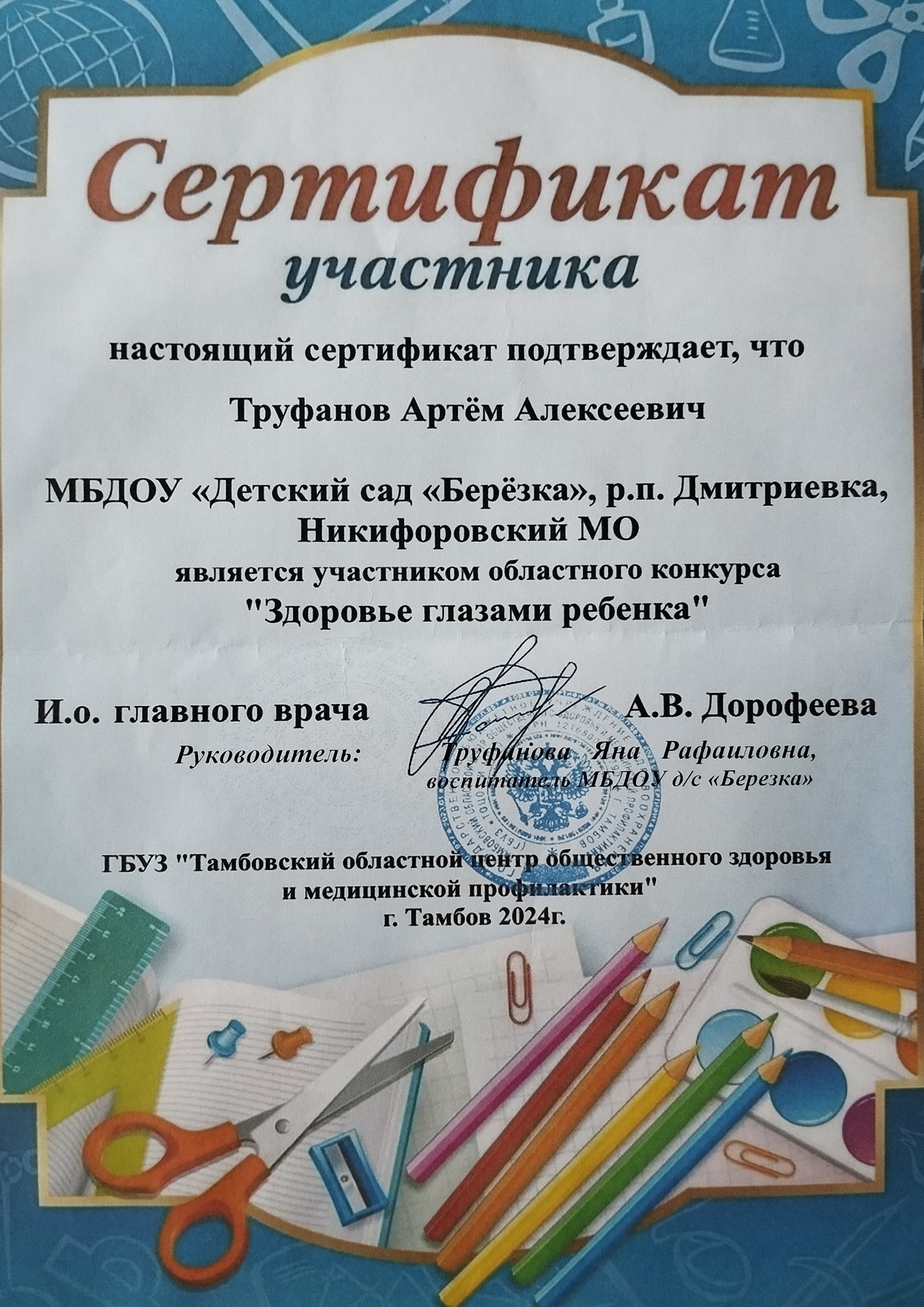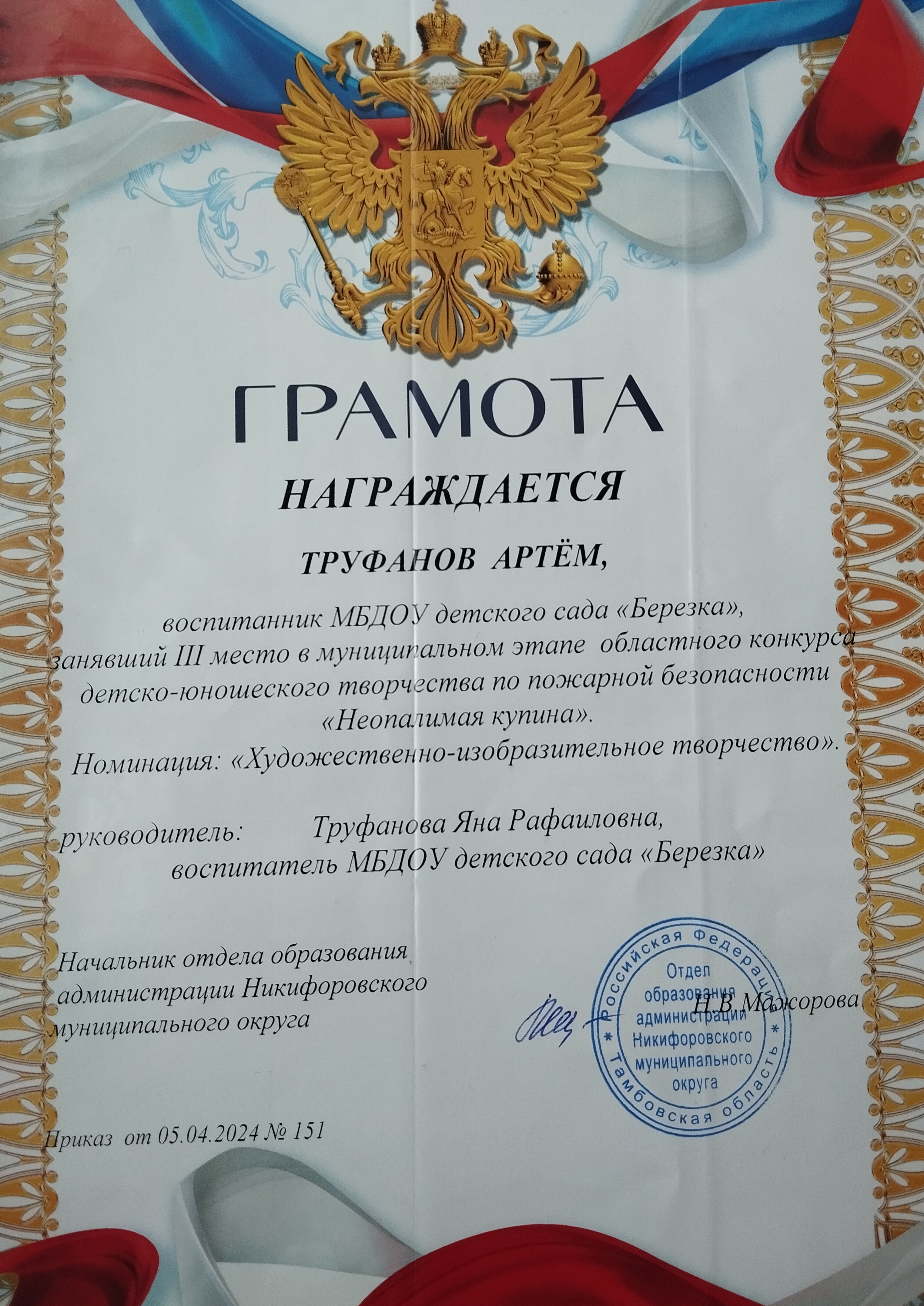 Награды Грамота отдела образования администрации Никифоровского муниципального округа-2025г.