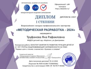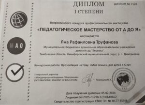 Персональная страничка воспитателя Труфановой Яны Рафаиловны