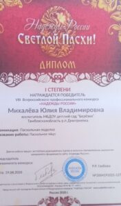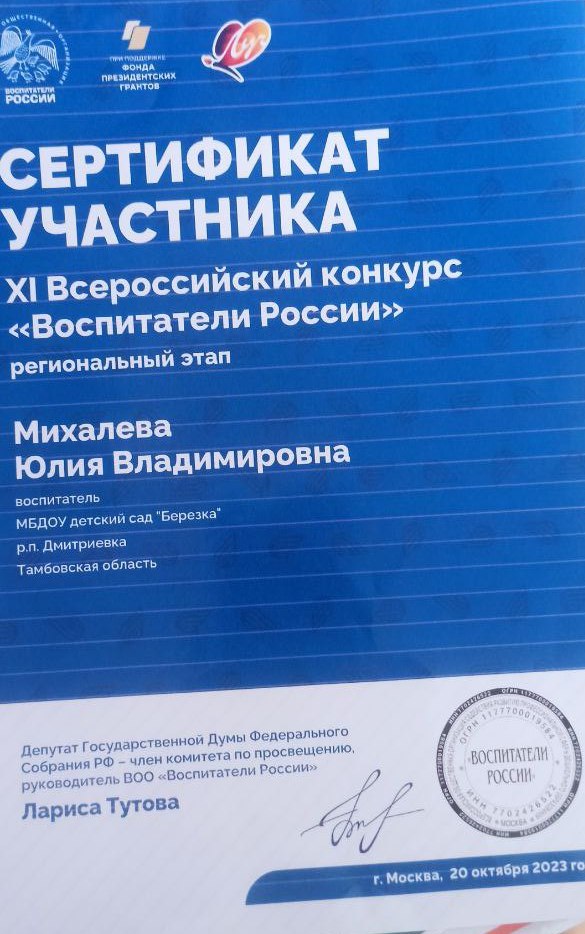 • Персональная страничка воспитателя Михалевой Юлии Владимировны